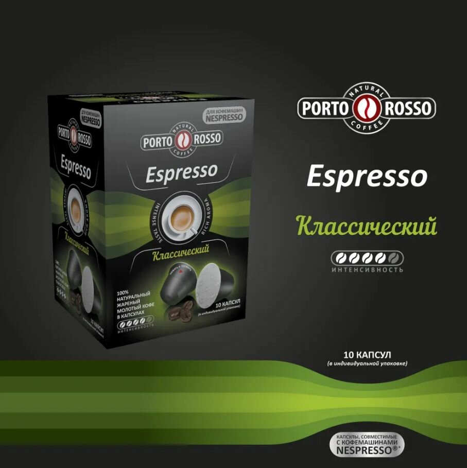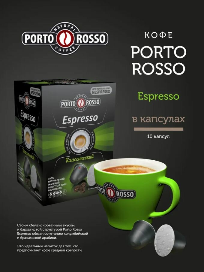 Кофе в капсулах PORTO ROSSO Espresso для кофемашин Nespresso, 10 порций