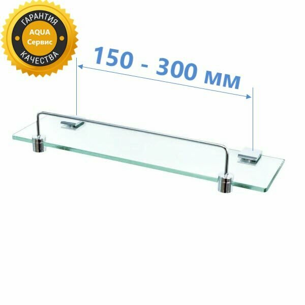 Купить Полка с бортиком, стекло 8 мм, длина 32 см ширина 10,4 см, кронштейны и крепление в комплекте, хромированный блестящий бортик