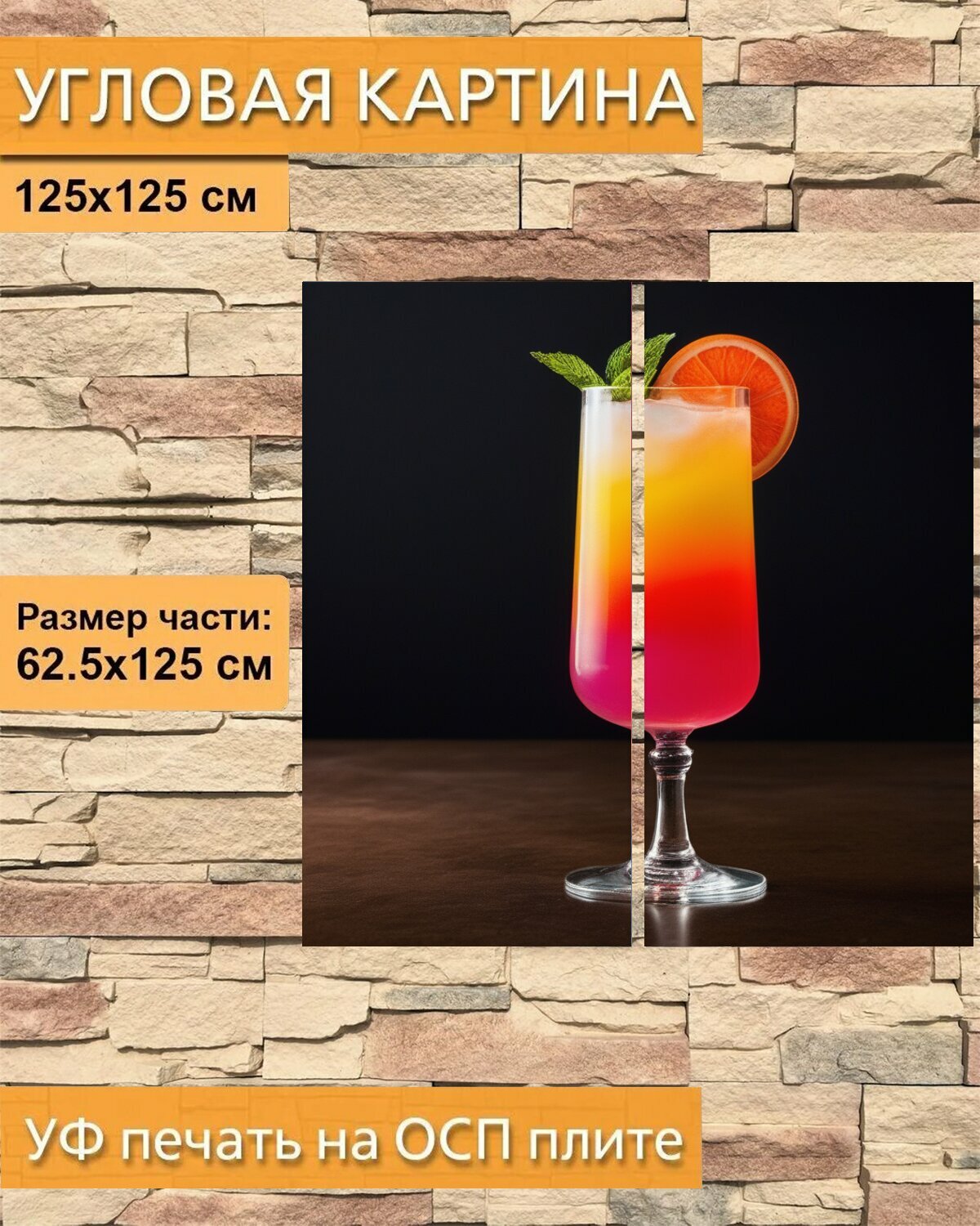 Модульная картина на ОСП для ценителей напитков "Напитки, коктейли, с мятой" 125x125 см. 2 части для интерьера на стену интересное: