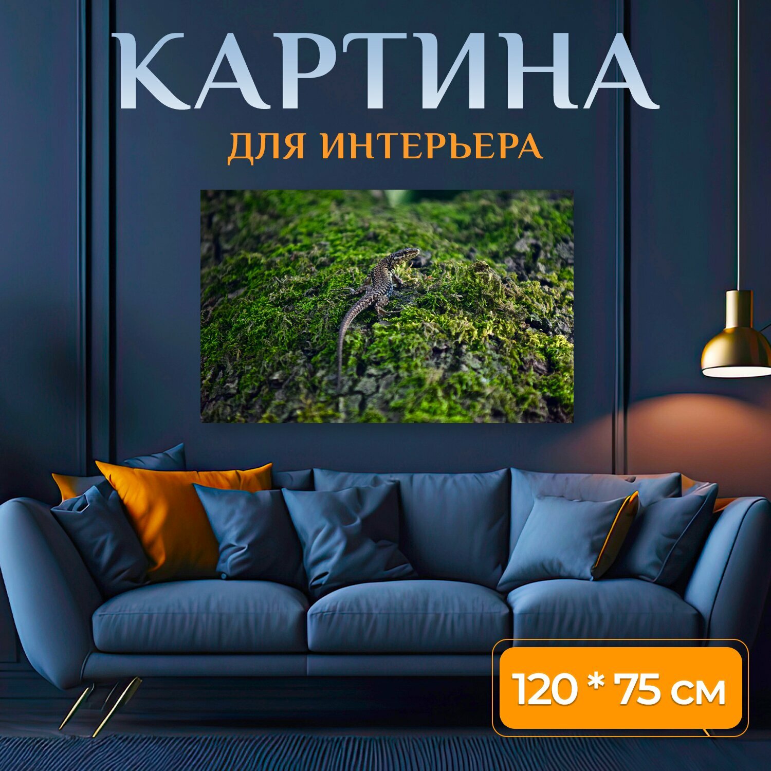 Купить Картина на холсте "Ящерица, зеленый, рептилия" на подрамнике 120х75 см. для интерьера