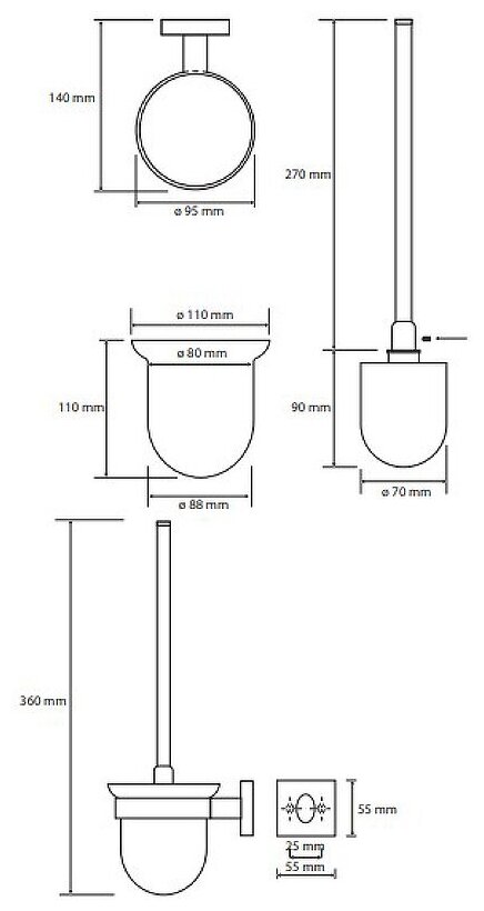 Ёрш настенный из нержавеющей стали, черный , GFmark