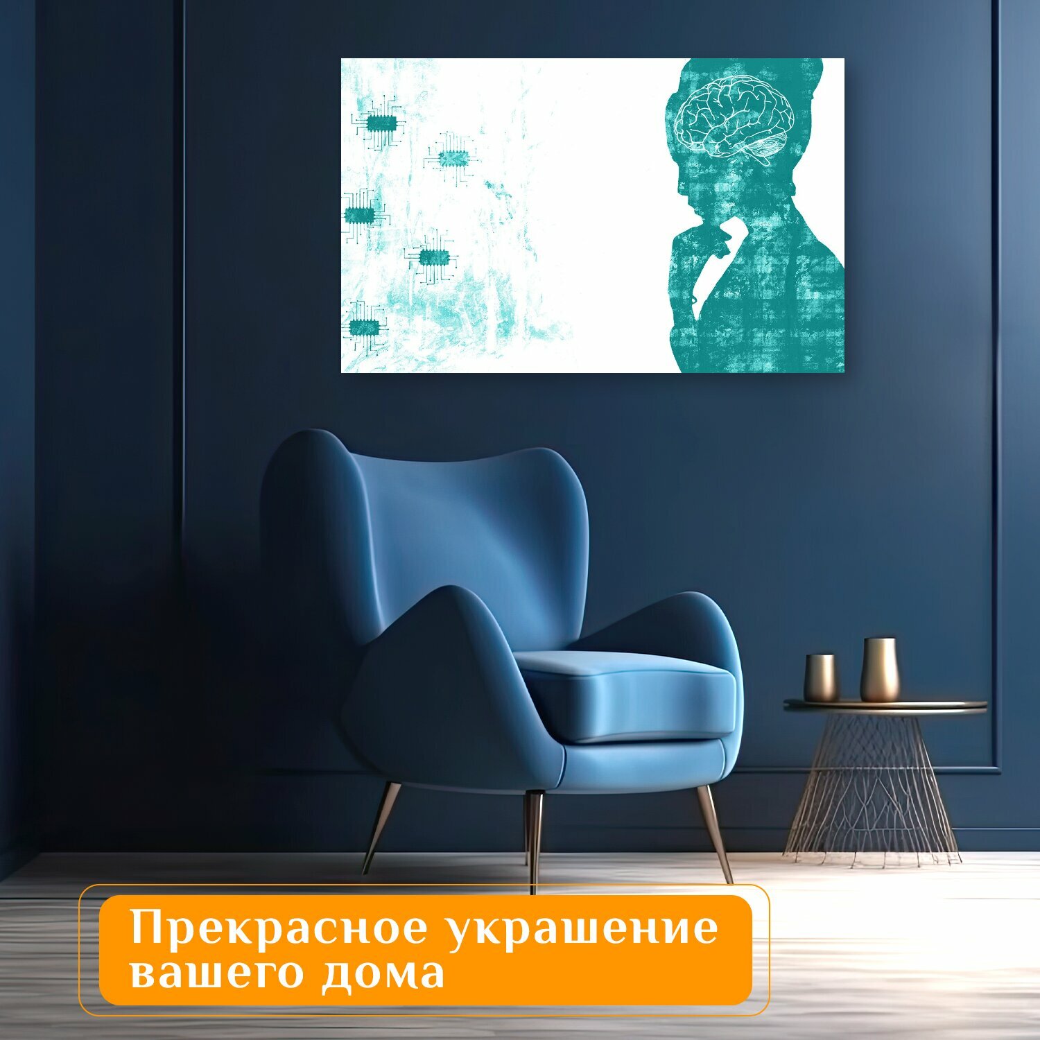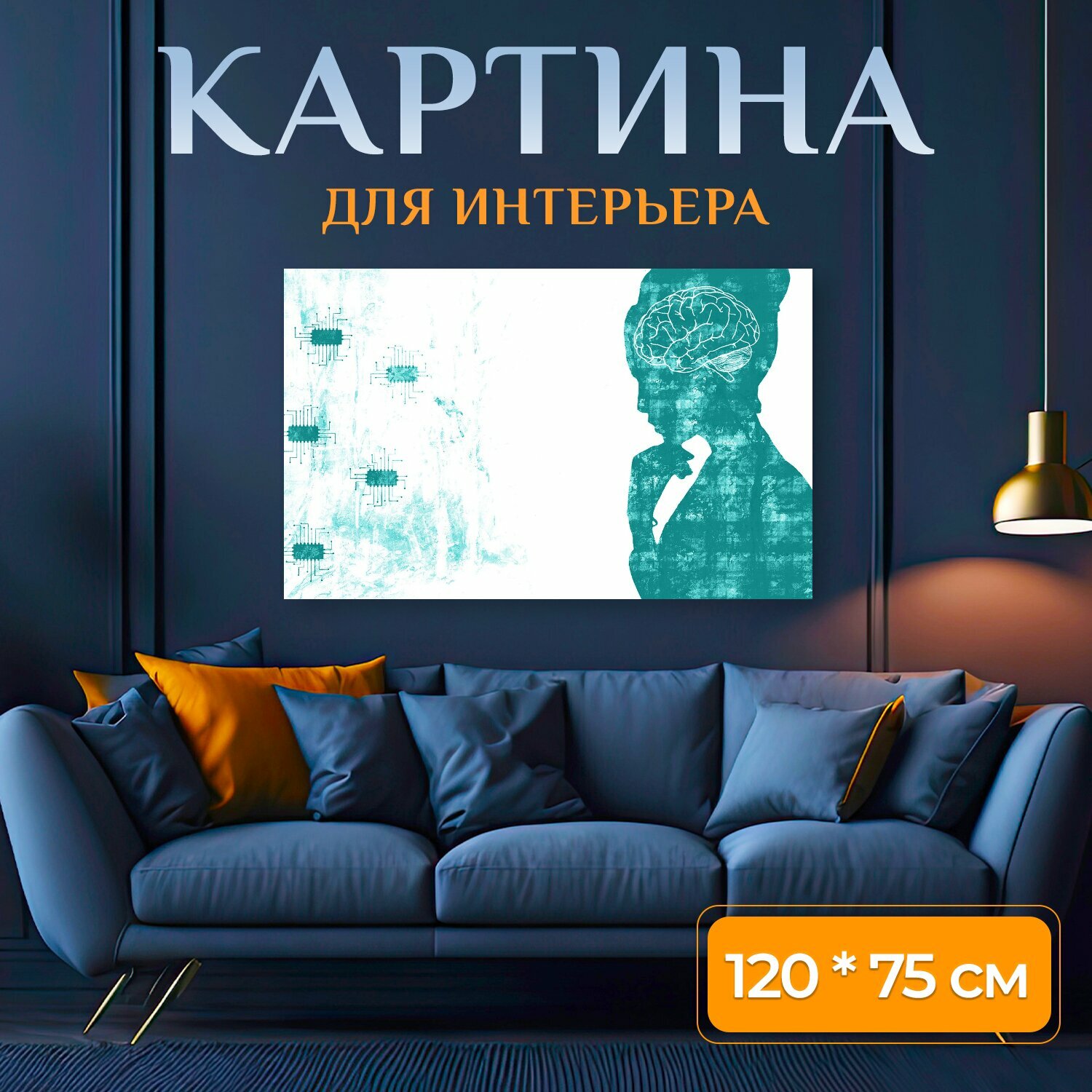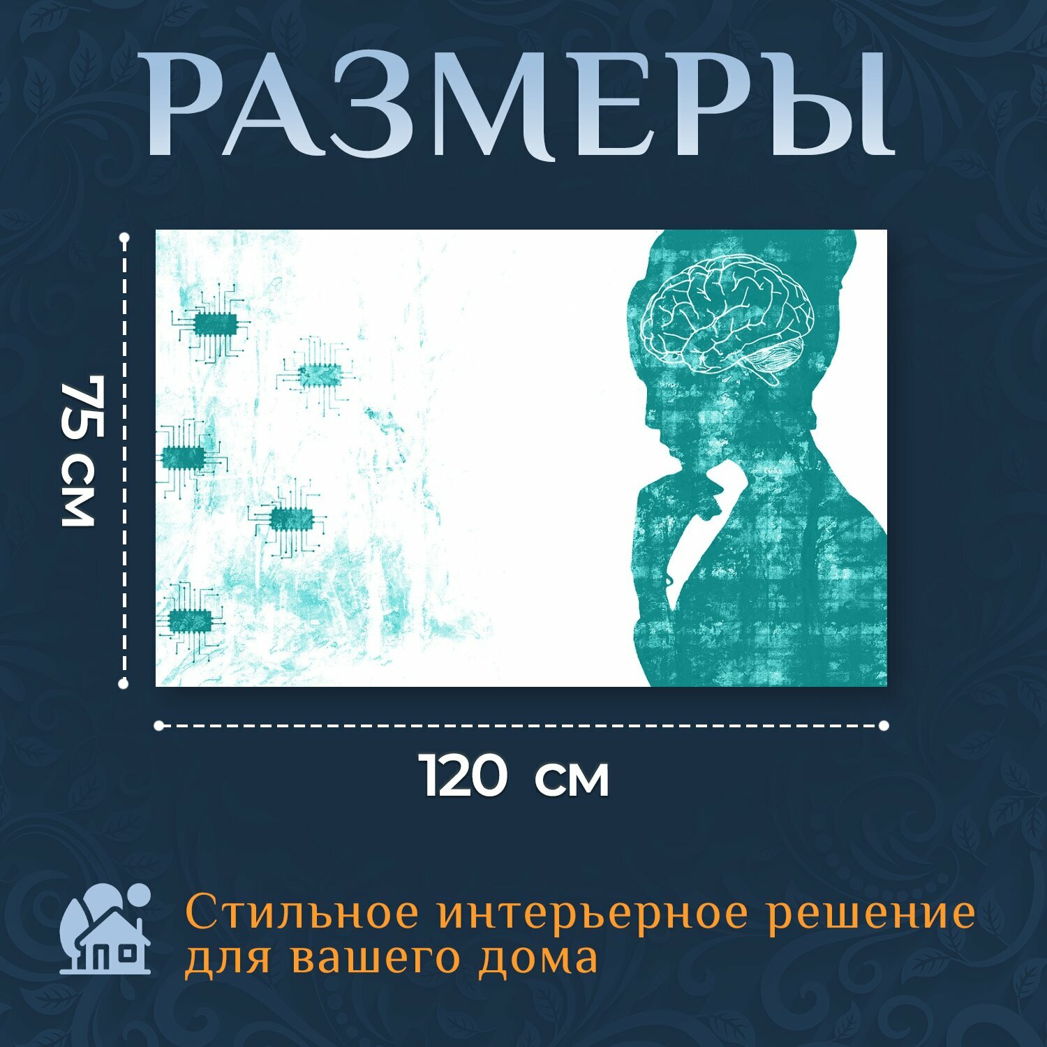 Картина на холсте "Головной мозг, чип, нейроны" на подрамнике 120х75 см. для интерьера интересное: