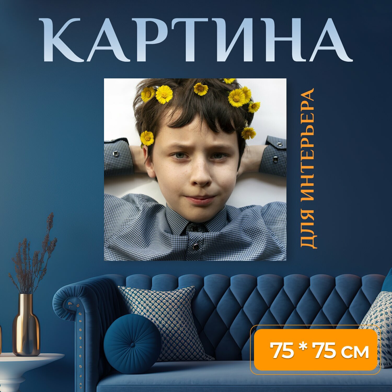 Картина на холсте "Портрет мальчика, портрет, подросток" на подрамнике 75х75 см. для интерьера интересное: