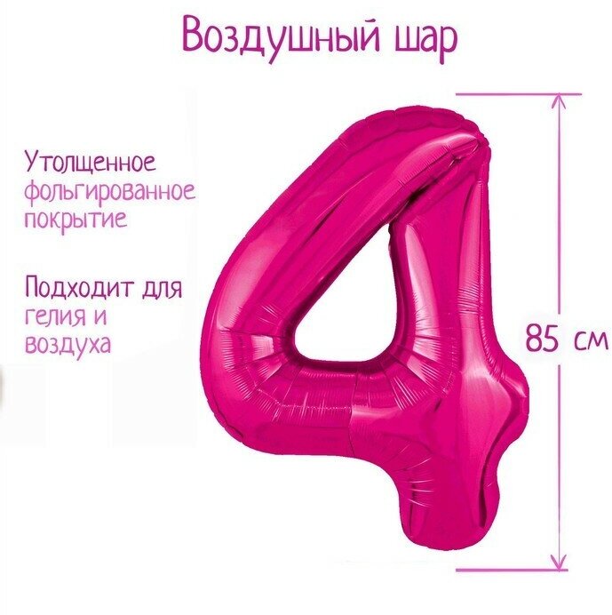Шар фольгированный 40 цифра 4, цвет фуксия Slim интересное: