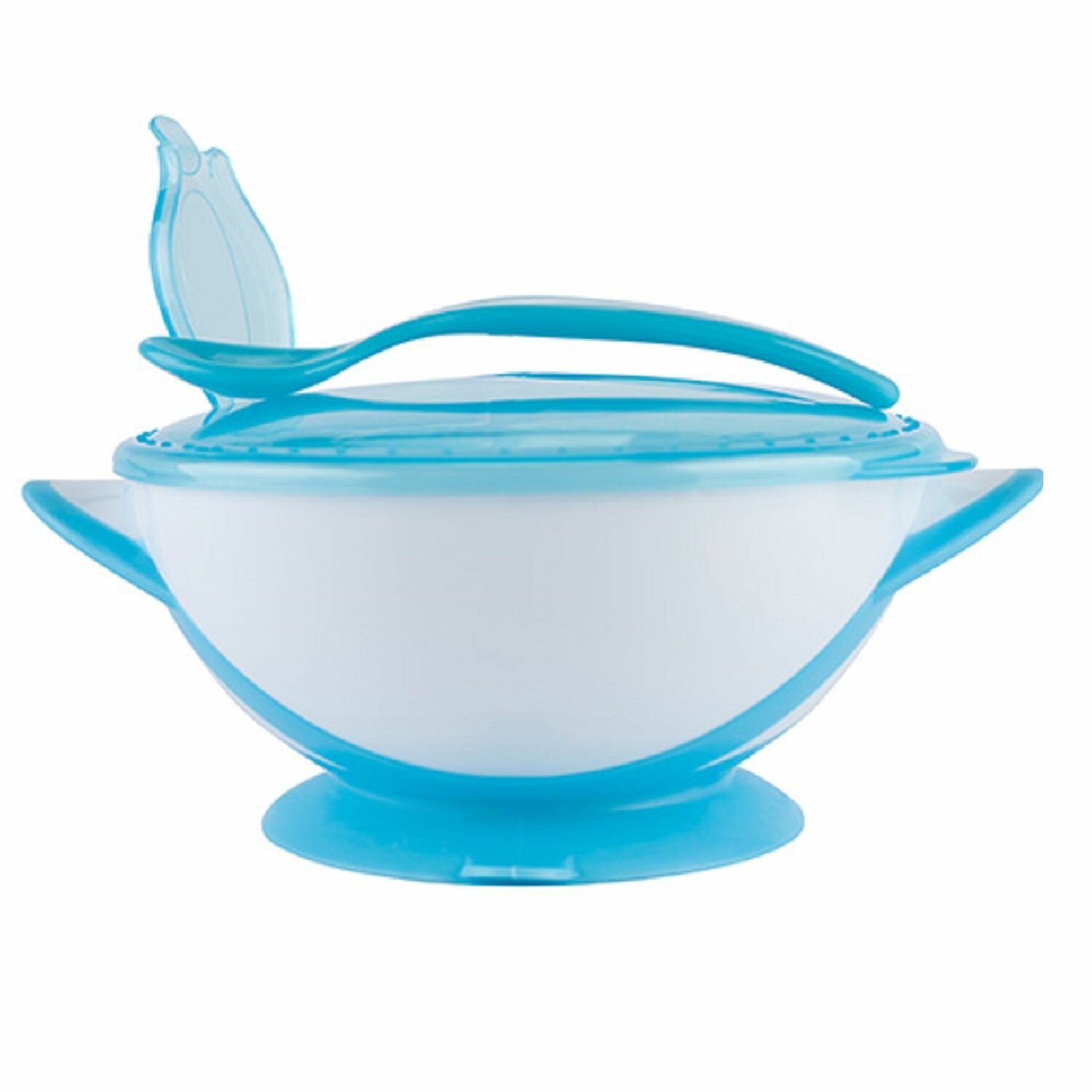 Купить Тарелочка Babyono с крышкой и ложечкой на присоске Голубая 1063