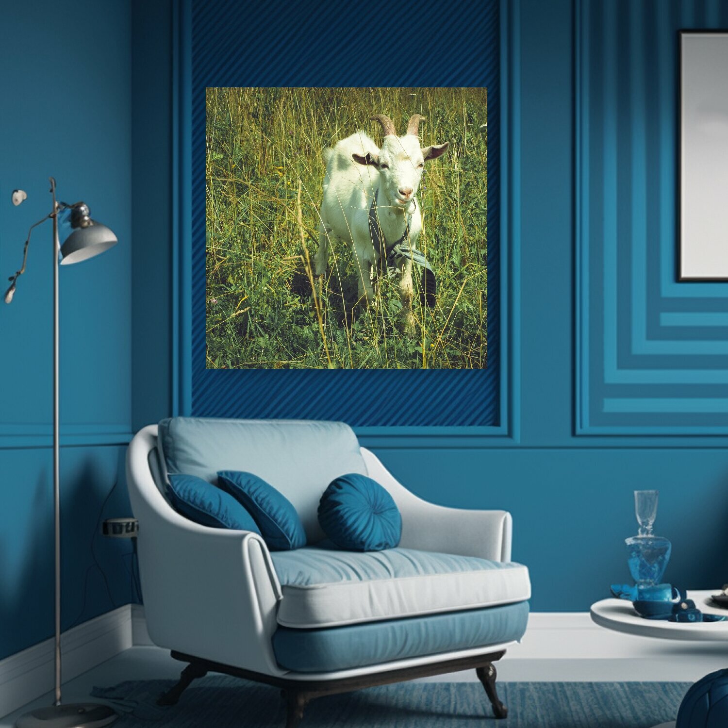 Купить Картина на холсте "Животное, козел, трава" на подрамнике 75х75 см. для интерьера