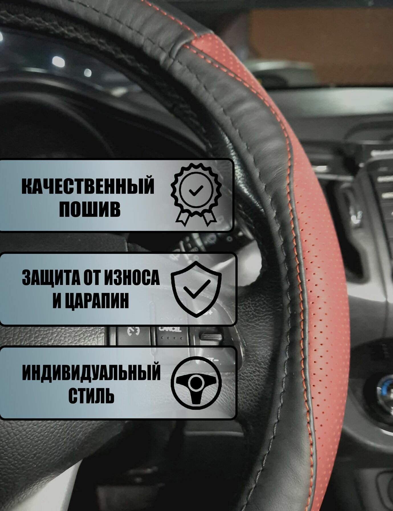 Оплетка, чехол (накидка) на руль Мазда цкс-9 (2020 - 2024) внедорожник 5 дверей / Mazda CX-9, натуральная кожа, Черный и красный интересное: