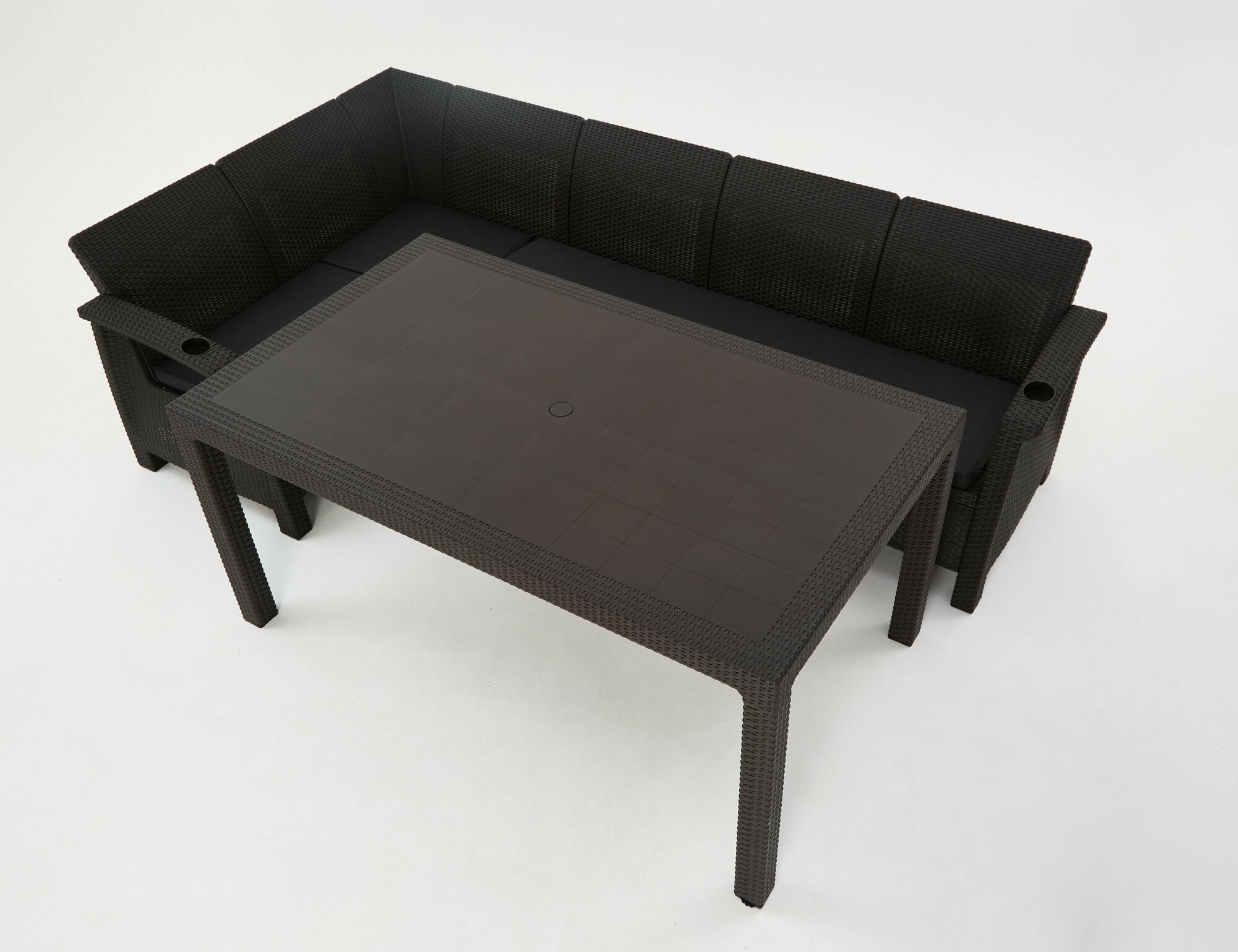 Купить Комплект садовой мебели из ротанга Set 5+1+2стула+обеденный стол 160х95, с комплектом черных подушек