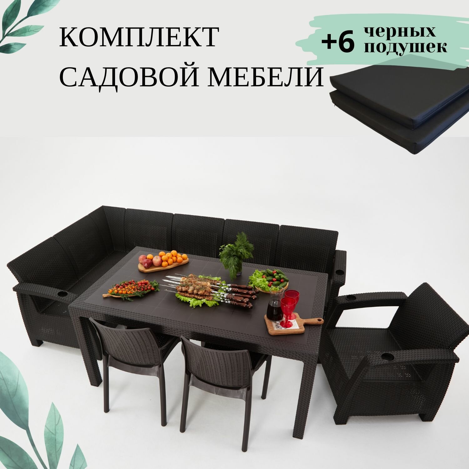 Комплект садовой мебели из ротанга Set 5+1+2стула+обеденный стол 160х95, с комплектом черных подушек интересное: