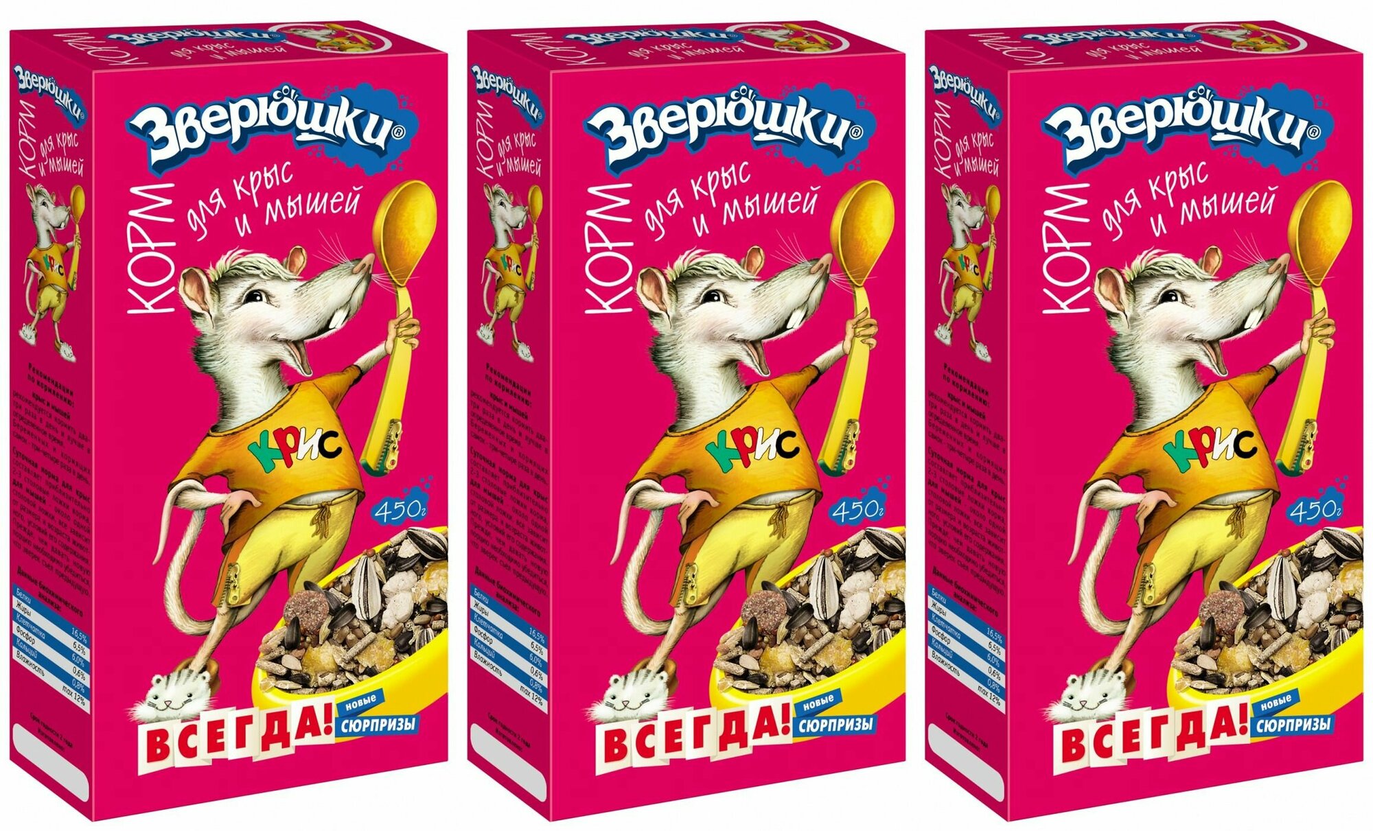 Зоомир Корм для декоративных мышей и крыс Зверюшки, 450 г, 3 уп