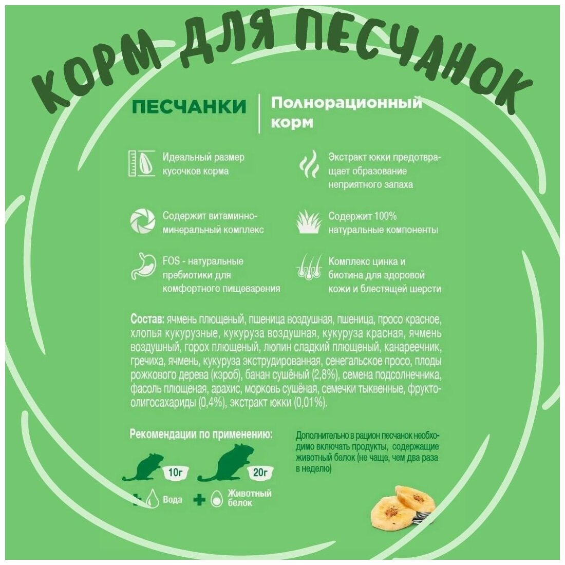 | Плюсы: | Песчанки любят этот корм |