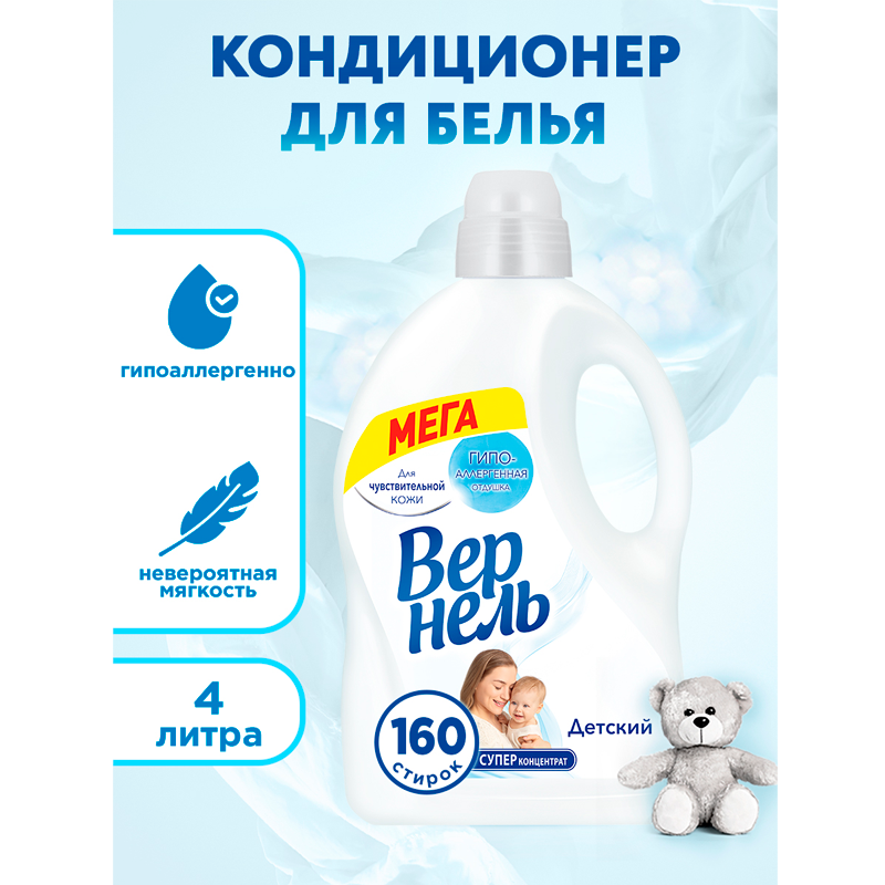 Купить Вернель Концентрированный кондиционер ополаскиватель для белья Детский, 4 л