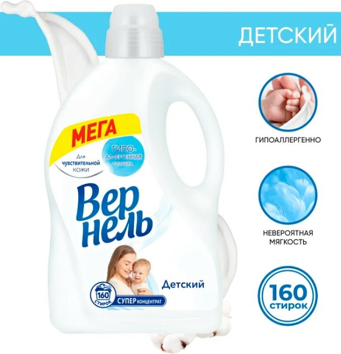 Кондиционер для белья Вернель, 2.73 л, для детских вещей, Детский, концентрат