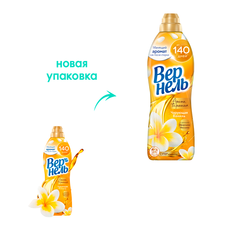 "Чарующая ваниль" - концентрированный кондиционер для белья от бренда Vernel, объем 1.74 л