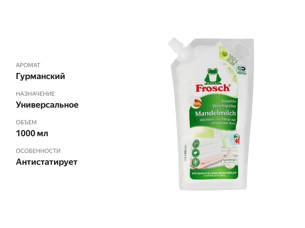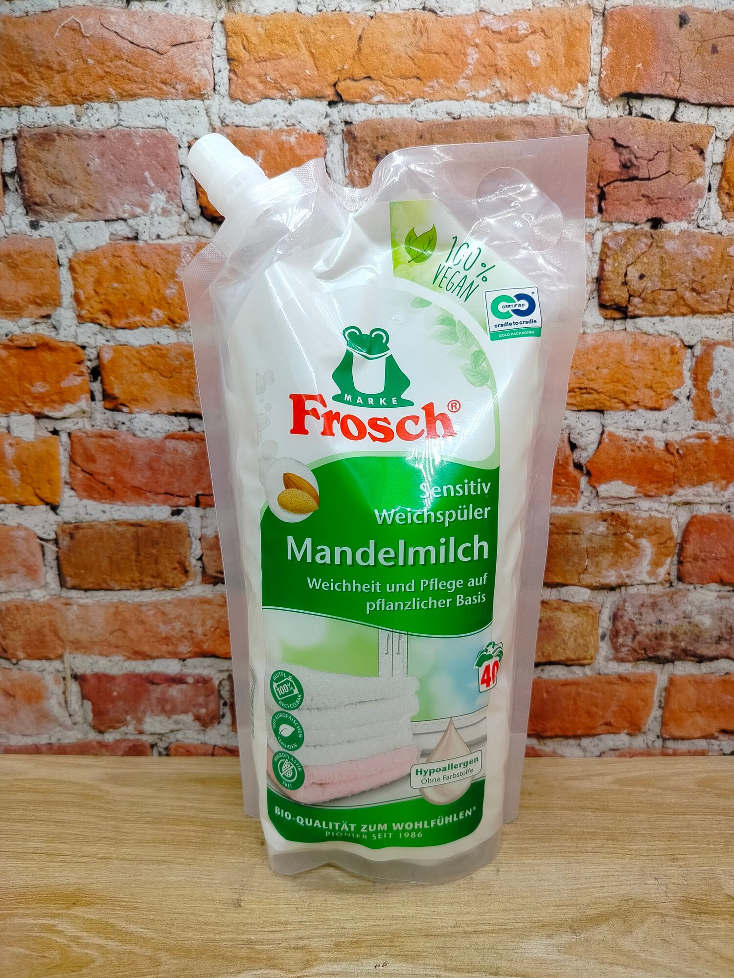 Frosch Концентрированный ополаскиватель для белья Миндальное молочко 1 л на 40 стирок в мягкой упаковке