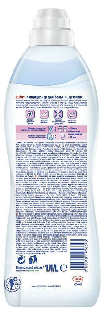 Е Кондиционер для белья Детский, 1000 мл интересное: