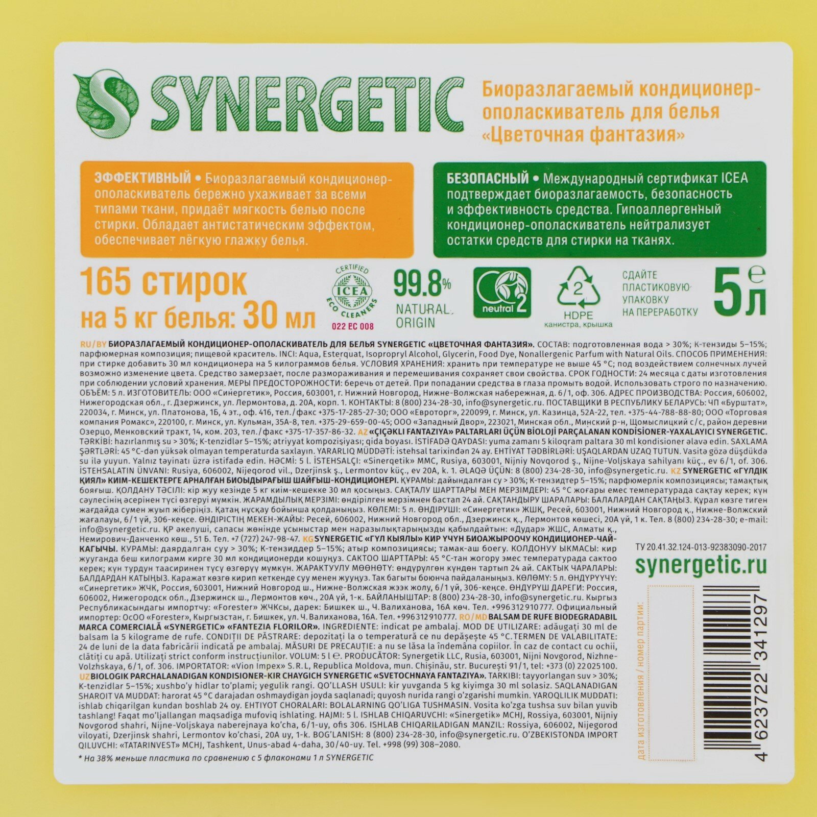 4623722341297 Synergetic Кондиционер для белья Цветочная Фантазия , 5 л 4623722341297 .