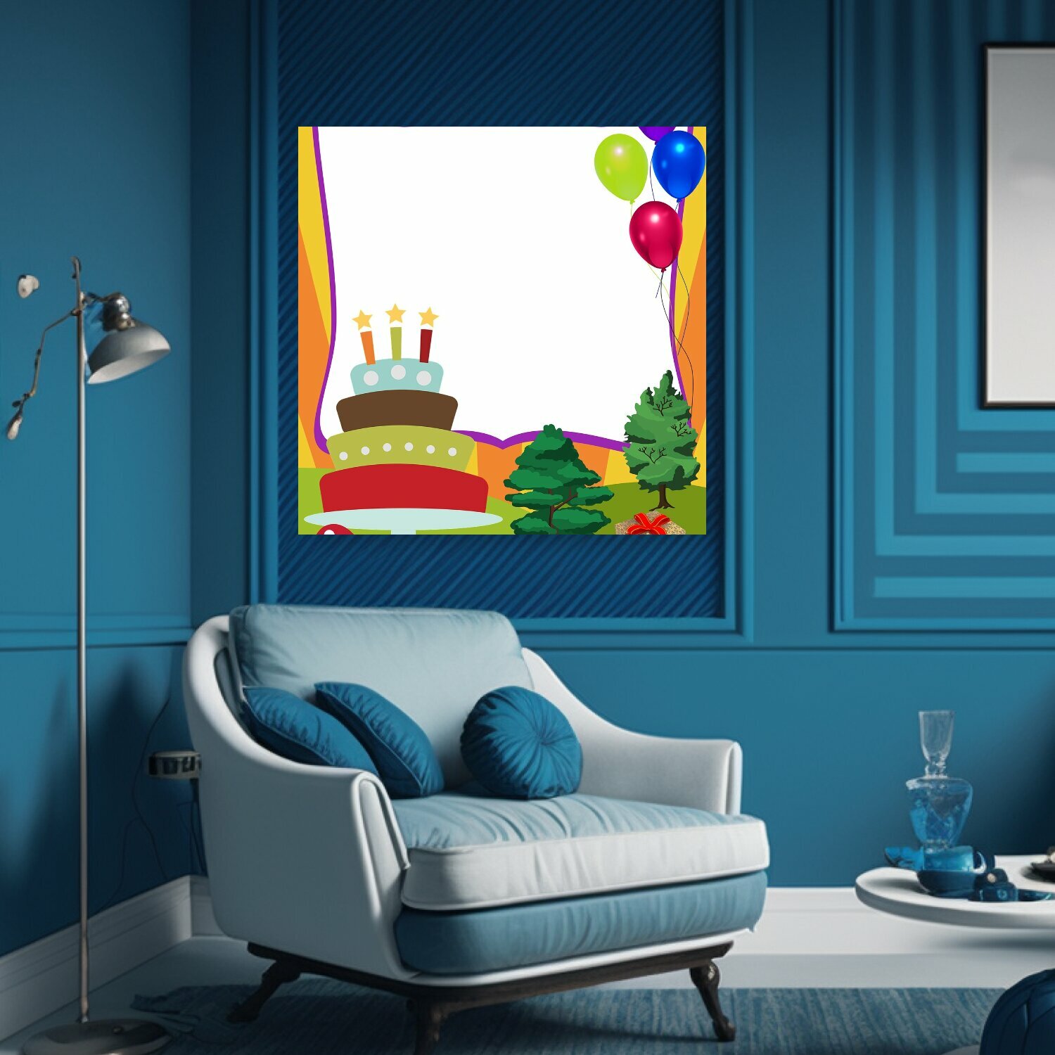 Купить Картина на холсте "Открытка, с днем рождения, партия" на подрамнике 75х75 см. для интерьера