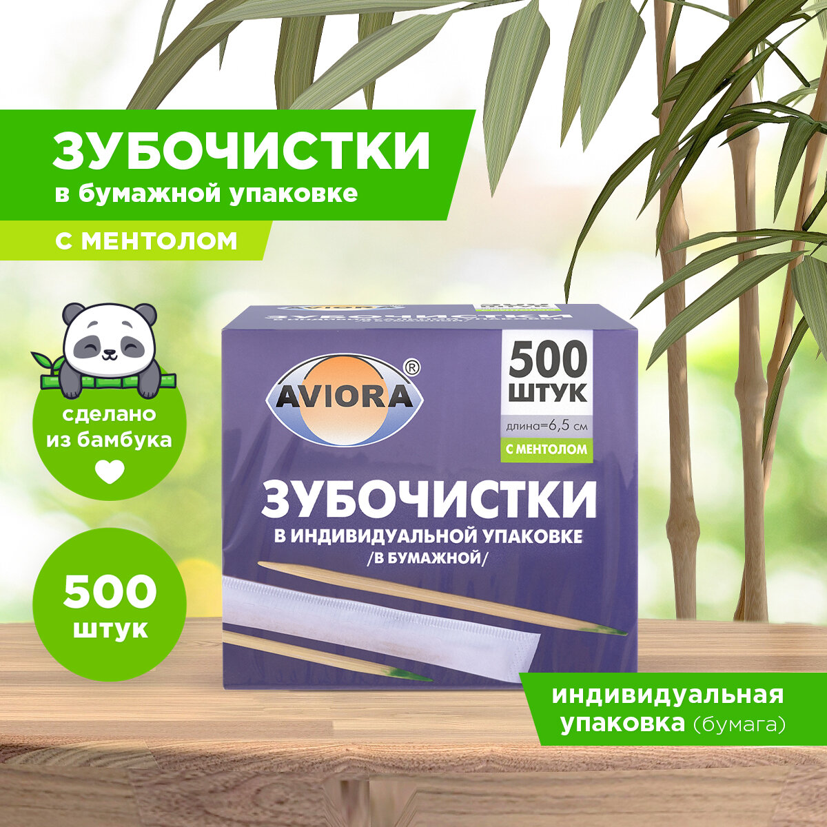 Aviora зубочистки Бамбуковые с ментолом в инд. упаковке (в бумаге), 500 шт. в уп.