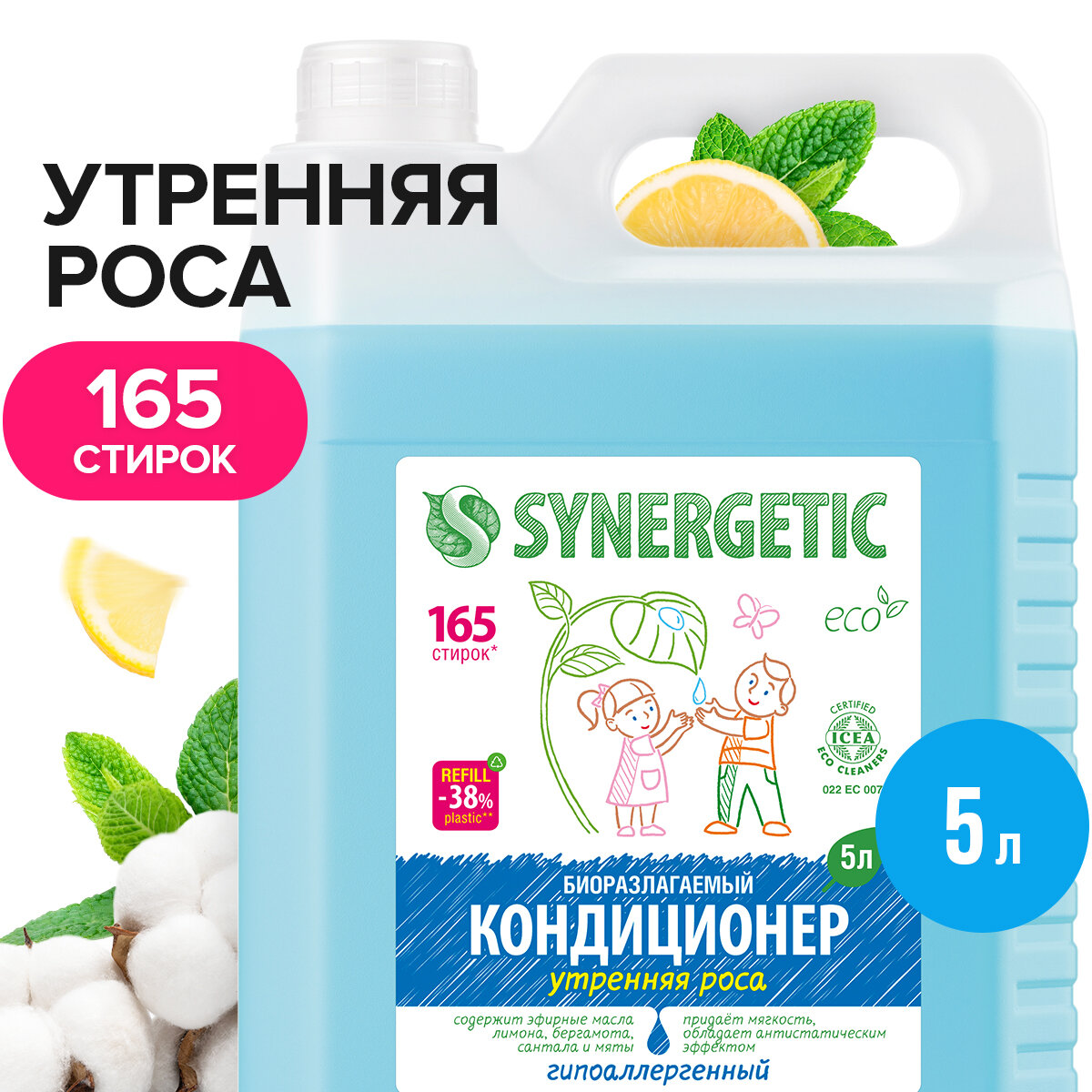 Synergetic Концентрированный кондиционер для белья Утренняя роса, 5 л, 5 кг