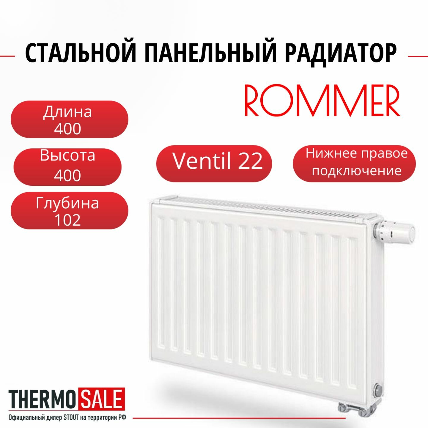 Радиатор Rommer Ventil 22/400/400 нижнее правое подключение, панельный