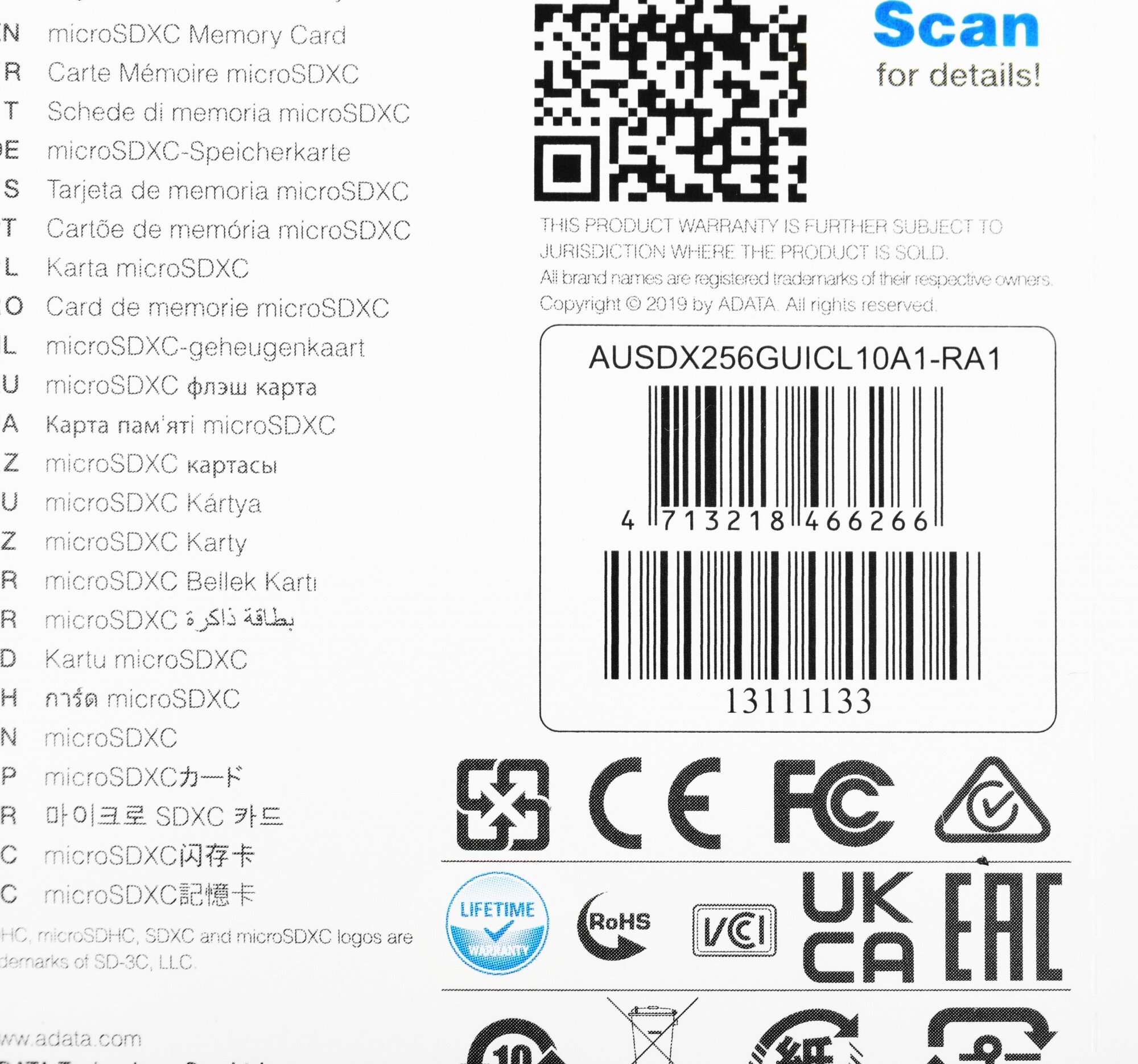 Память microSD 256Gb A-DATA AUSDX256GUICL10A1-RA1 .