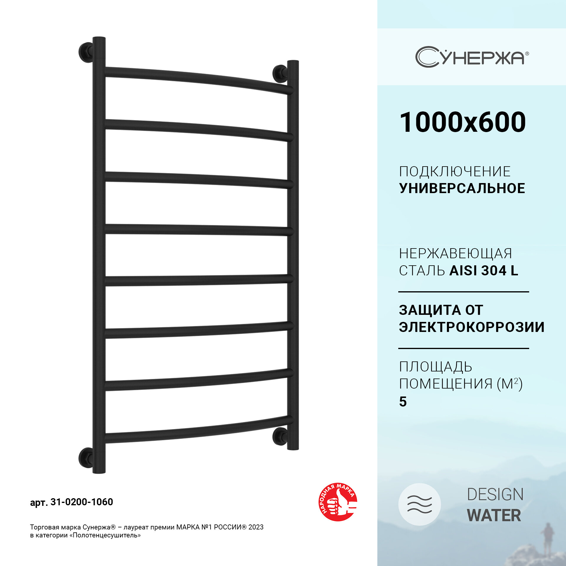СУНЕРЖА Галант+ Полотенцесушитель 1000х600 (8 ступ.) черный матовый, универс. подкл. 3/4"