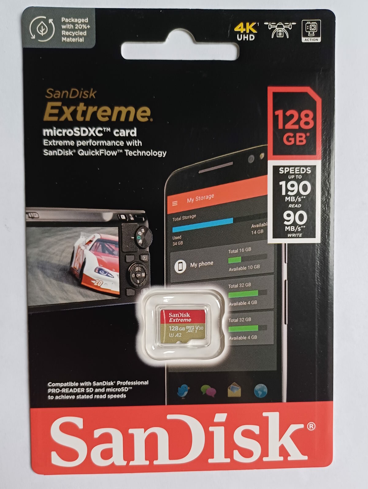 Ниже Вы можете прочитать отзывы на Карта памяти с адаптером SanDisk Extreme microSDXC 128 ГБ Class10 UHS Class 3 V30 A2 190/90 Mb/s (Go Pro, dji, дроны), ознакомится с подробными характеристиками, посмотреть интересные обзоры и фотографии на Карта памяти с адаптером SanDisk Extreme microSDXC 128 ГБ Class10 UHS Class 3 V30 A2 190/90 Mb/s (Go Pro, dji, дроны).