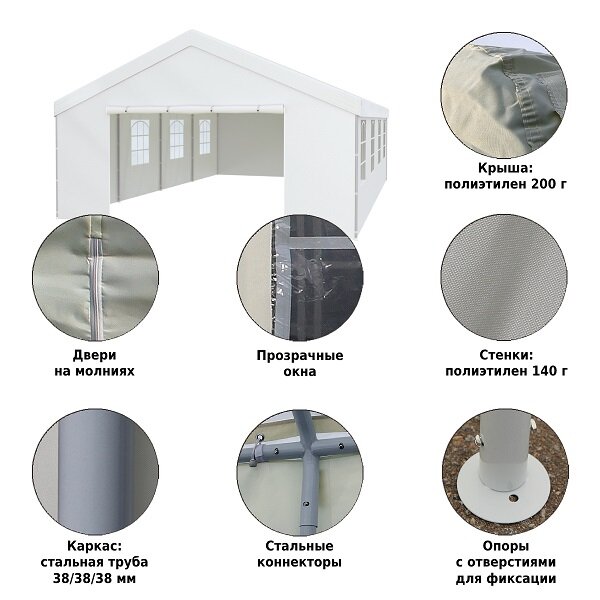Шатер Green Glade 3018, со стенками, 8 х 5 х 3.1 м белый