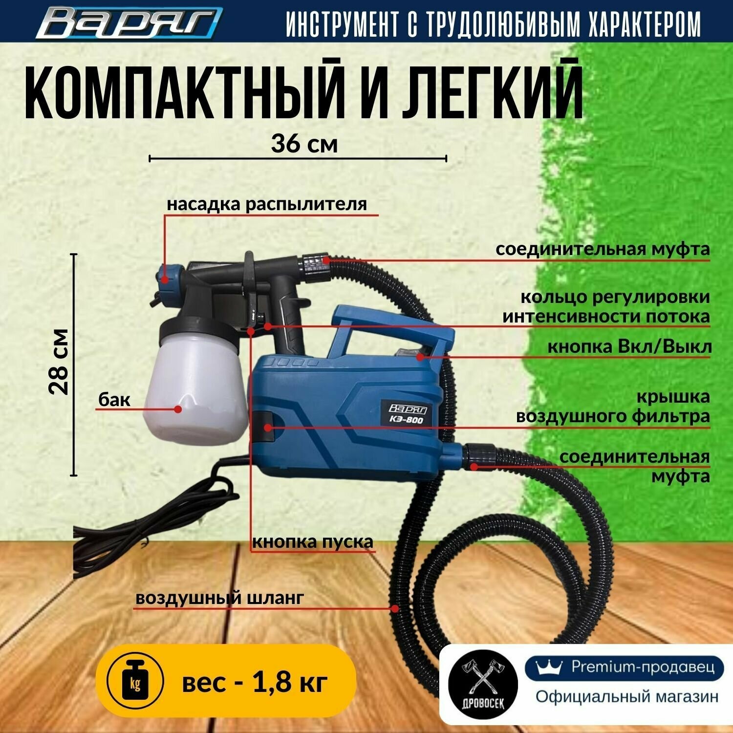 Краскопульт электрический варяг КЭ-800, электрокраскопульт от сети, распылитель для краски(800 Вт, 800 мл) интересное: