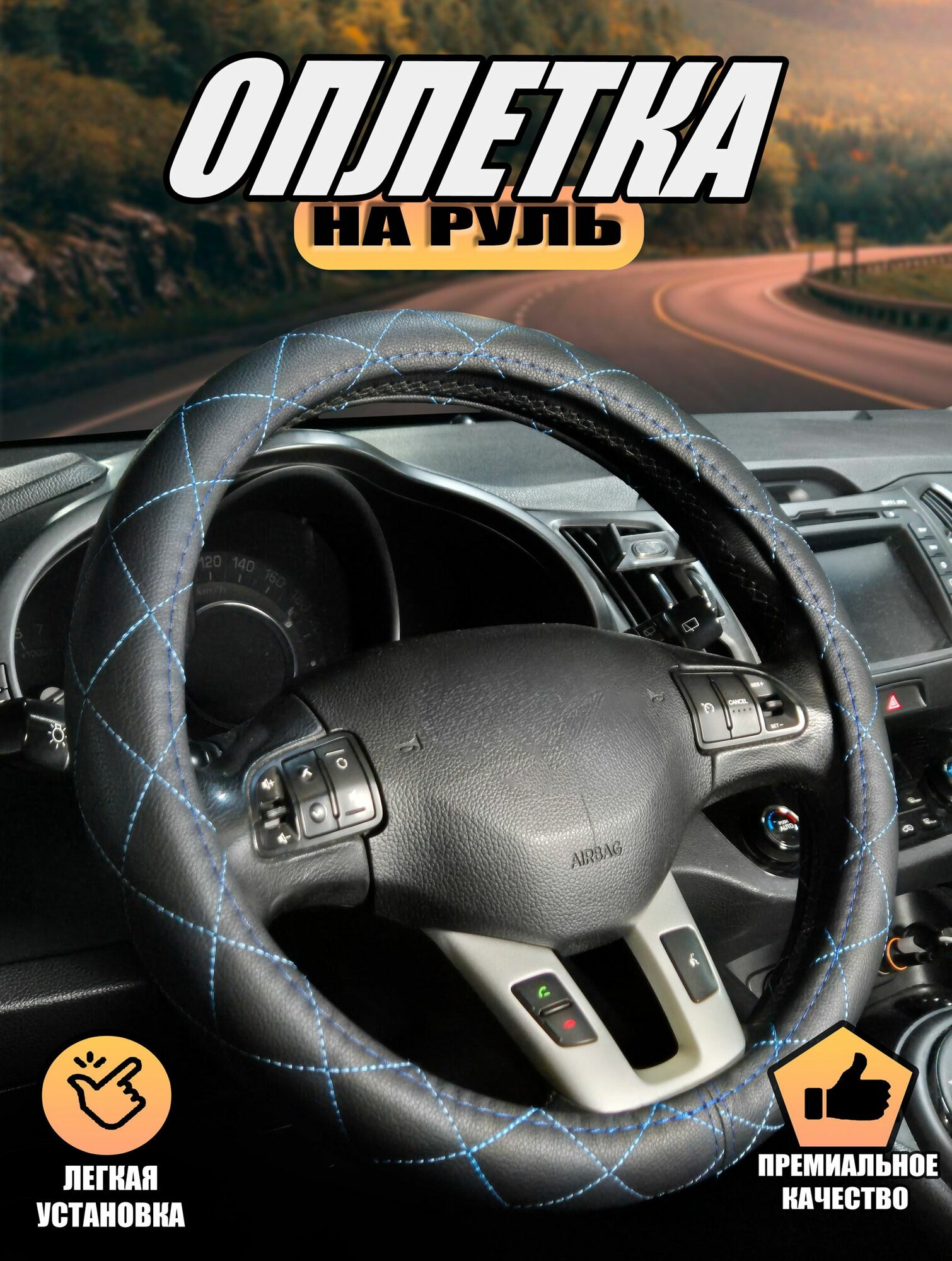 Оплетка, чехол (накидка) на руль Мерседес-Бенц Ц-класс (2006 - 2011) универсал 5 дверей / Mercedes-Benz C-Class, экокожа, Черный с синей строчкой интересное: