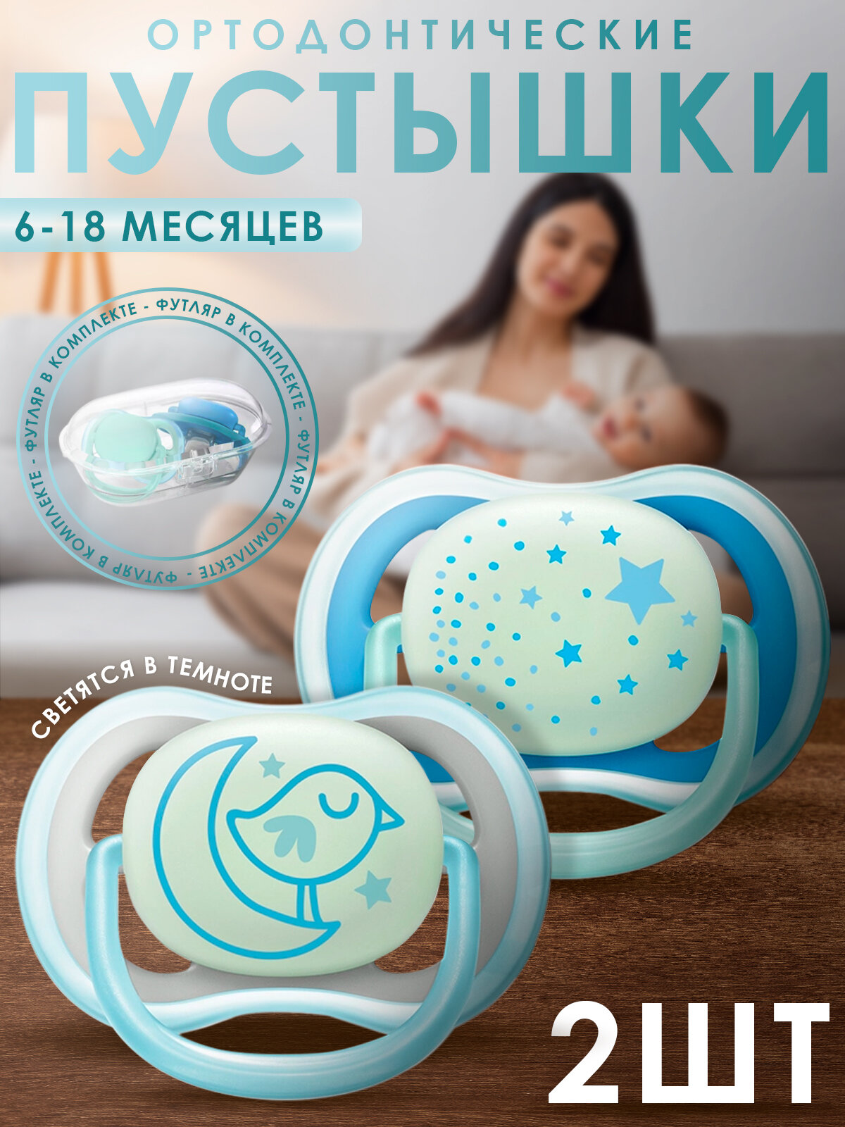 Пустышка силиконовая ортодонтическая Philips AVENT ultra air SCF342/20 6-18 м, 2 шт., голубой