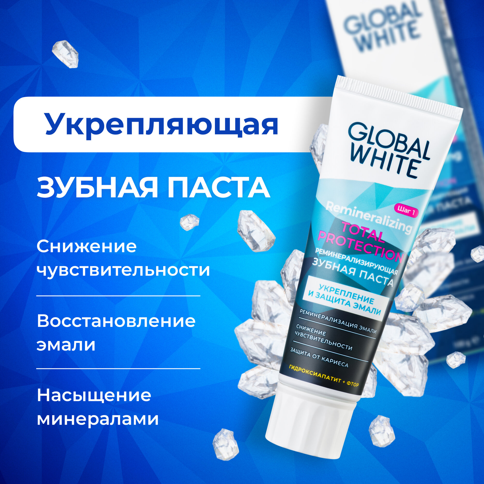 Реминерализирующая зубная паста GLOBAL WHITE/Remineralizing toothpaste / Восстановление эмали / 100 г / RDA 50
