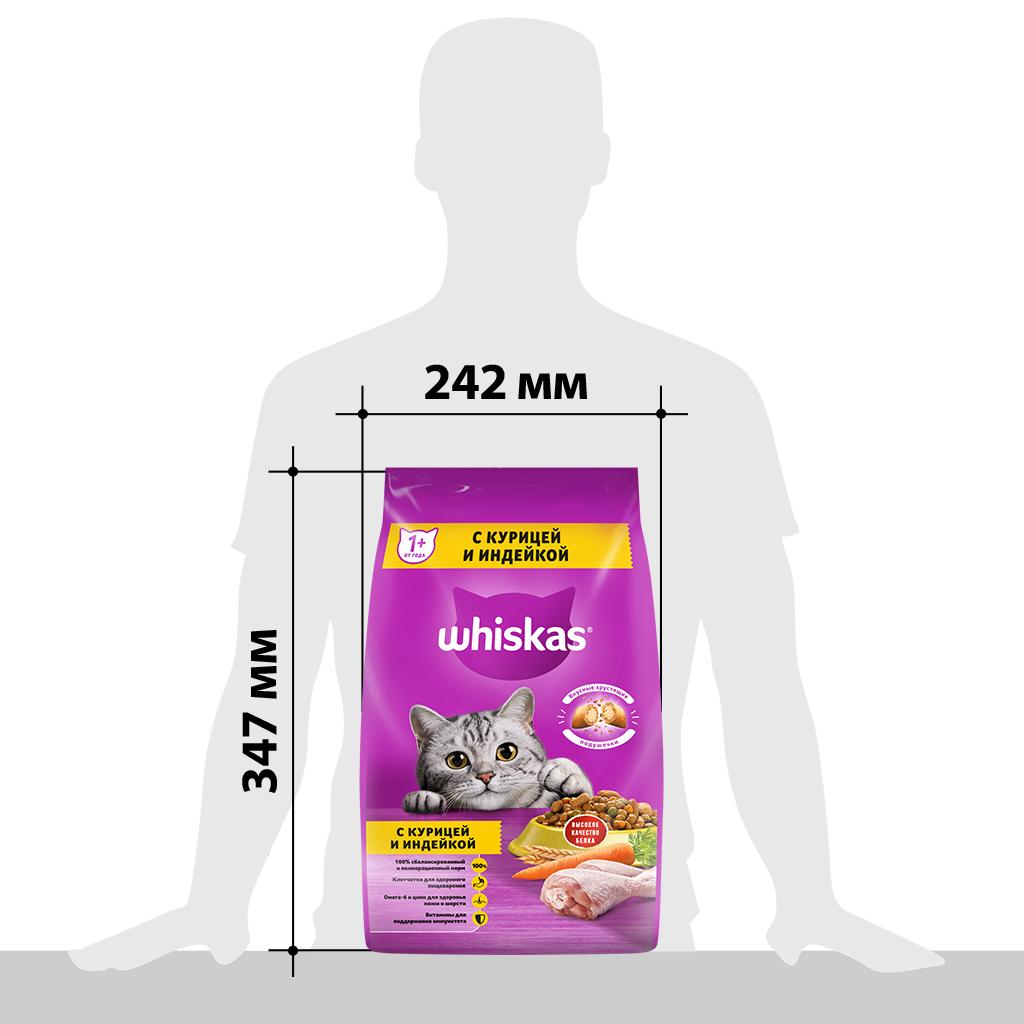 Сухой корм Whiskas для кошек, курица/индейка, подушечки, 350 г