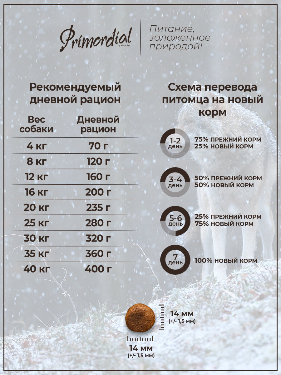 Влага - 8 % Сырой белок - 30 % Сырые масла и жиры- -20 % Сырая зола - 8,4 % Сырая клетчатка -2,4 % 3a672a Витамин A - 21000 МЕ/кг Витамин D3 - 1400 МЕ/кг 3a700 Витамин E - 180 мг/кг E4 пентагидрат сульфата меди - 59 мг/кг E1 Карбонат железа - 62 мг/кг E5 Оксид марганц - а77 мг/кг E6 Моногидрат сульфата цинка - 186 мг/кг E2 Йодистый калий - 4,85 мг/кг E8 селенит натрия - 0,35 мг/кг Энергетическая ценность - нет данных Поскольку раньше я свою собаку кормила канадским кормом, где была указана калорийность, приходится примерятся по весу, не зная, сколько калорий, рассчитывать опытным путем. Выяснила, что для кастрированного не особо активного метиса таксы весом 14 кг на низкокалорийной Acana оптимальная доза в один прием - 65 г, на Primordial тоже. На упаковках обычного низкокалорийного корма ВСЕГДА указывается больше. В случае кастрированных собак нужно подбирать опытным путем в течение времени, используя точные весы. Если заметили, что питомец полнеет, убавляйте порцию на несколько граммов. Очень большая разница, кастрирована/стерилизована собака, или нет. Не знаю, как корм подходят не кастрированным/стерилизованным, но кастратам не очень. Всегда выбираю только холистик. |