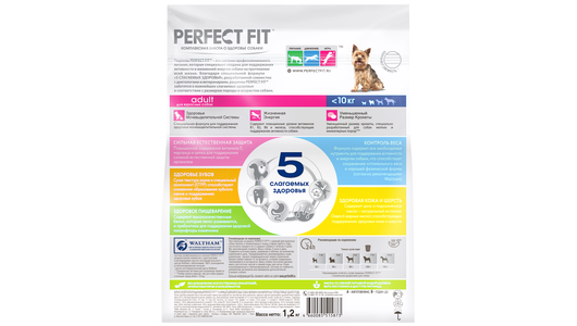 Корм для собак PERFECT FIT для мелких и миниатюрных пород старше одного года, курица сух. 1,2кг