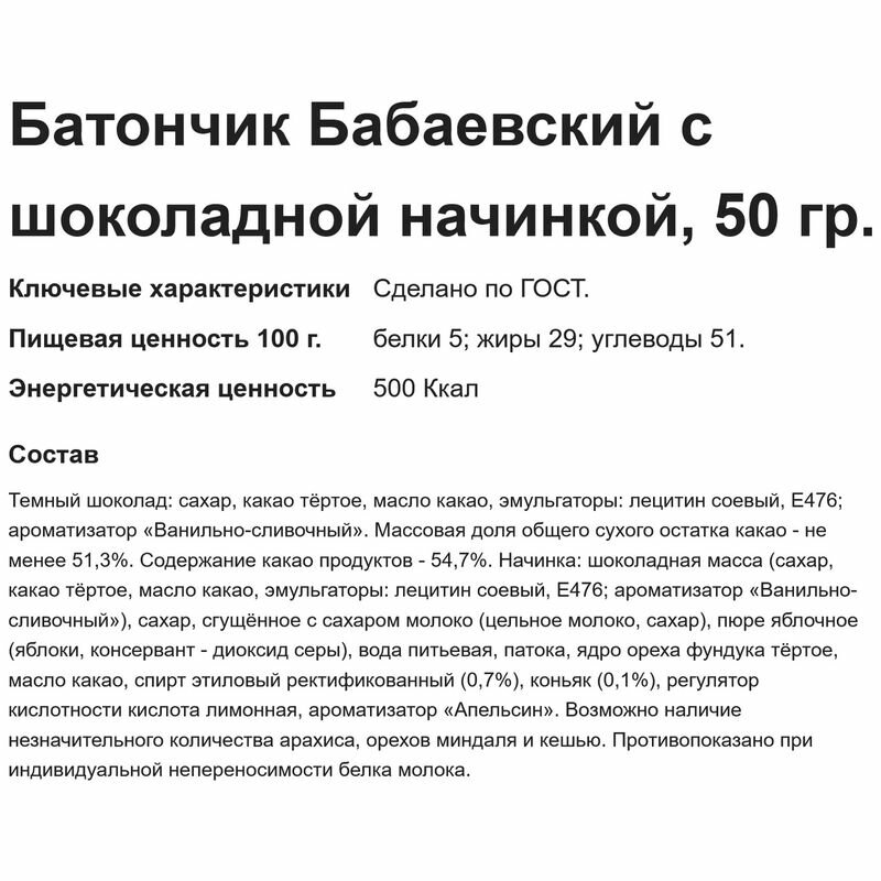 Батончик Бабаевский с шоколадной начинкой 50 гр - 20 шт
