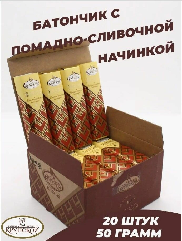 Шоколадный батончик Крупской с помадно-сливочной начинкой 50 г х 20 шт