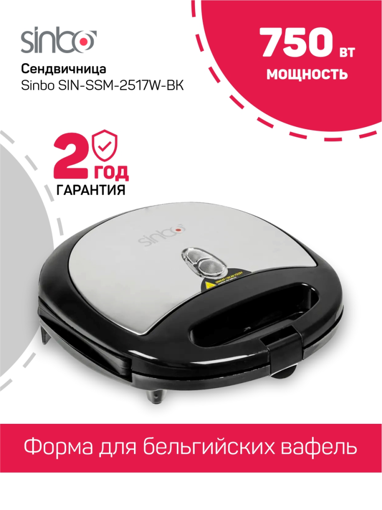 Вафельница Sinbo SSM 2517W, черный/серебристый