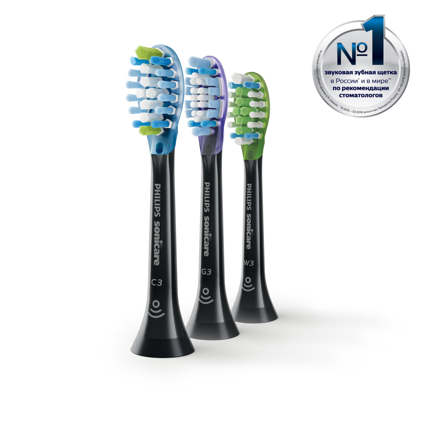 Набор насадок Philips Sonicare C3 Premium Plaque Defence HX9073/33 для ирригатора и звуковой щетки, черный, 3 шт.
