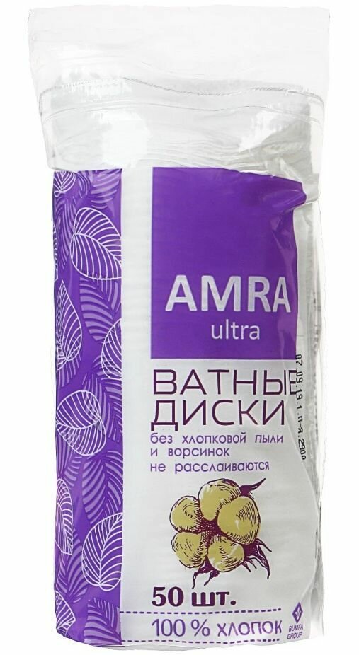 Ватные диски Amra с прошитым краем, 50 шт., пакет