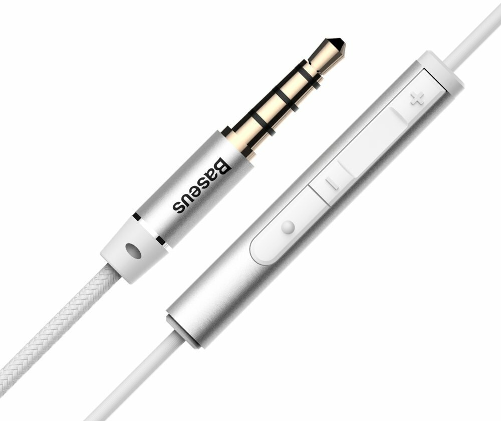 Наушники BASEUS H06 проводные с микрофоном и пультом управления, jack 3.5 мм, серебро
