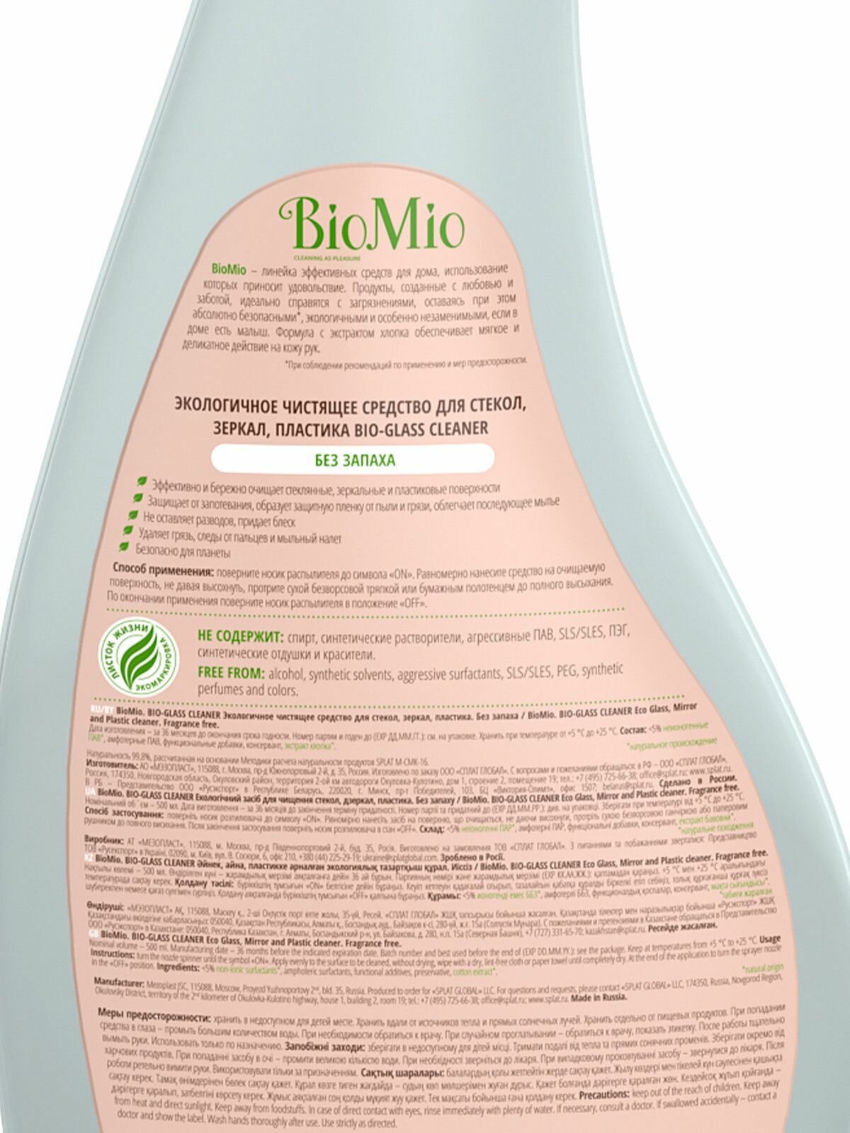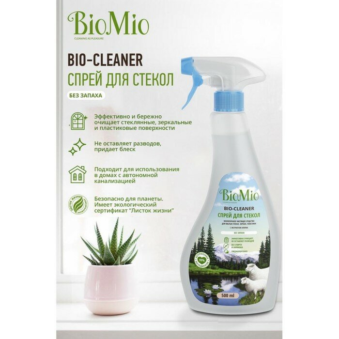 Чистящий спрей Biomio BIO-GLASS CLEANER для стекол, зеркал, пластика, без запаха, 500 мл