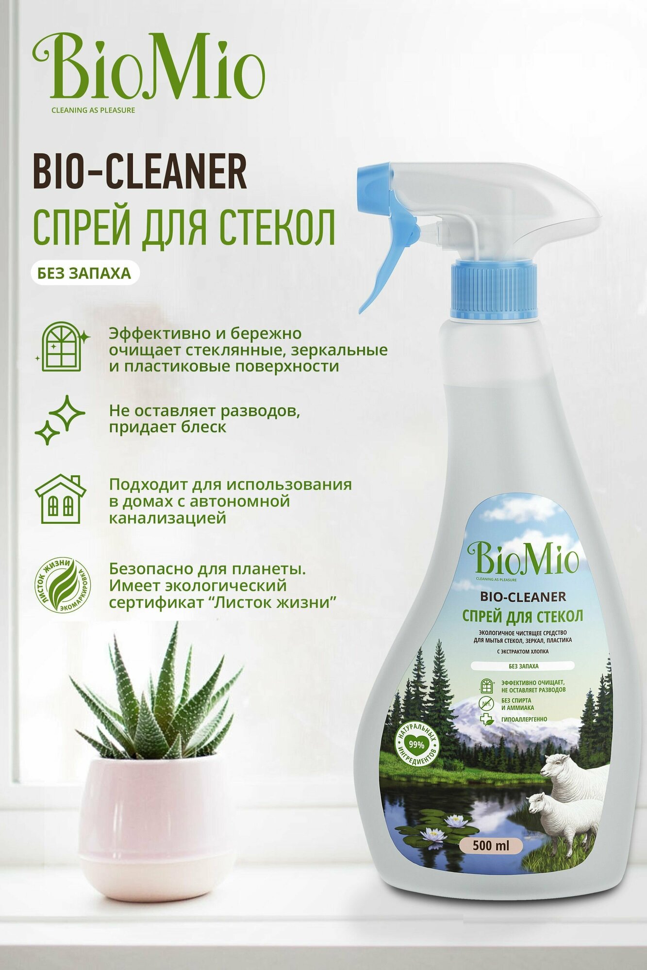 BioMio BIO-CLEANER Спрей для стекол, 500 мл.