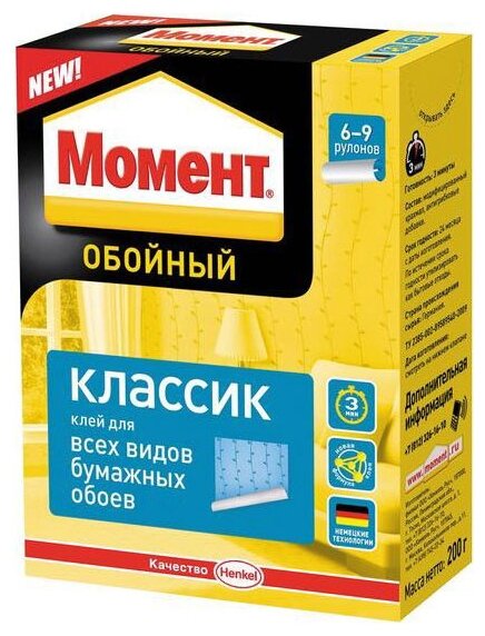 Henkel Момет Классик, обойный клей для бумажных обоев, 200 г