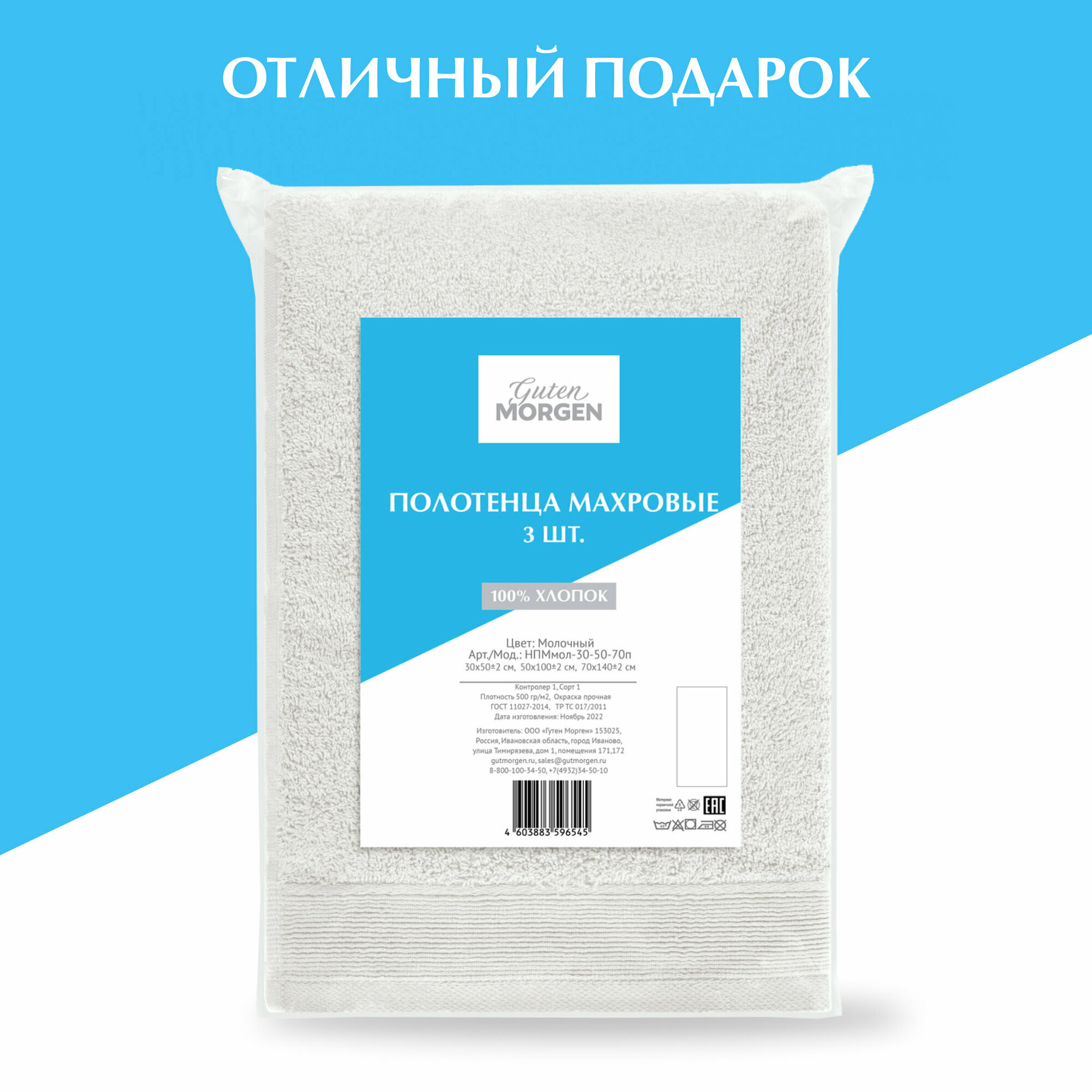 СохранитьПолотенце махровое Guten Morgen, цвет Молочный, 70х140 см интересное: