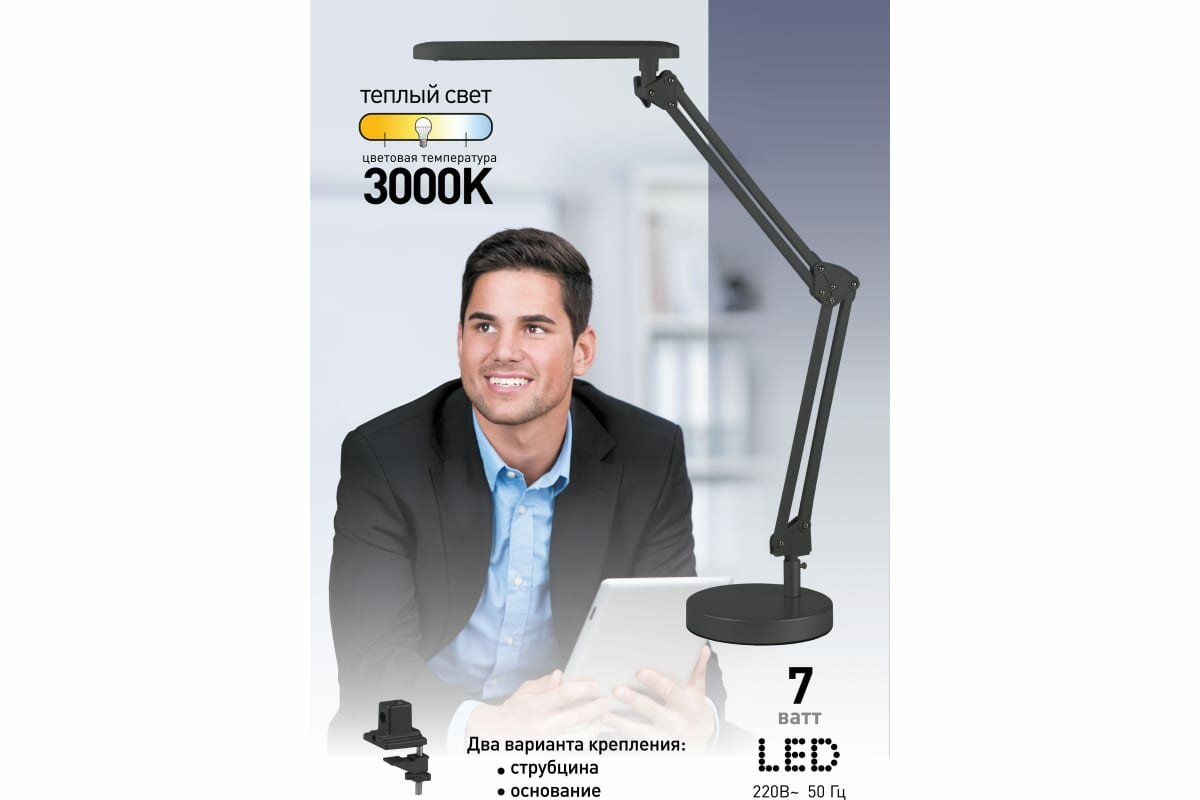Светильник настольный светодиод на струбцине+основание 7Вт черный NLED-440-7W-BK ЭРА