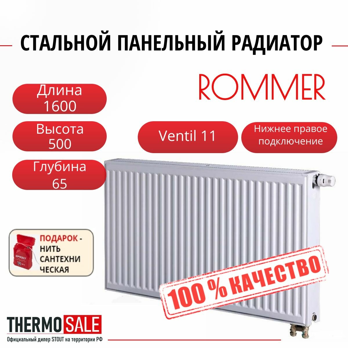 Rommer RRS-2020-115160 ROMMER 11/500/1600 радиатор стальной панельный нижнее правое подключение Ventil