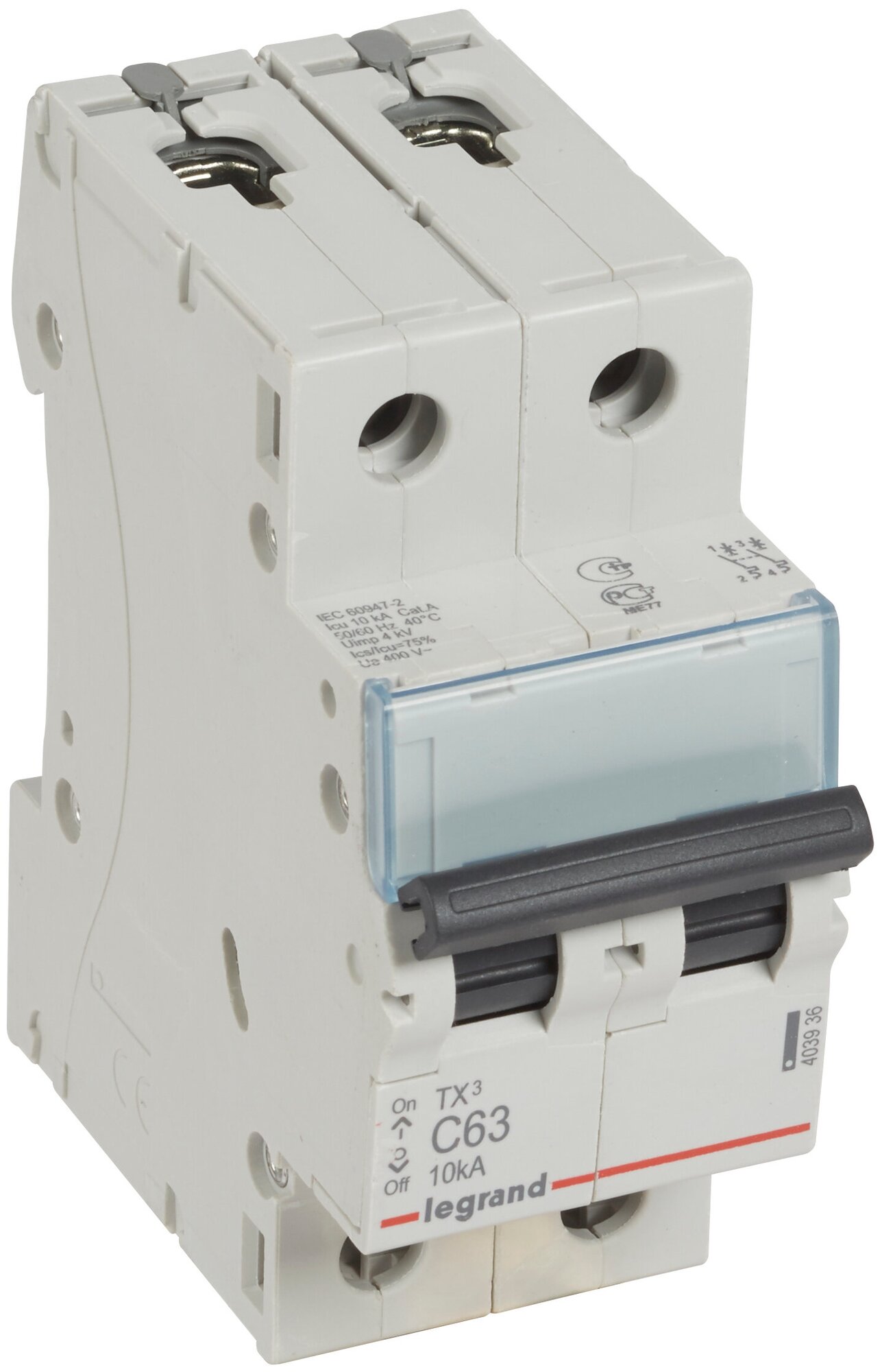 Legrand 403935 Автоматический выключатель TX3 6000 - 10 кА - тип характеристики C - 2П - 230 400 В - 50 А - 2 модуля