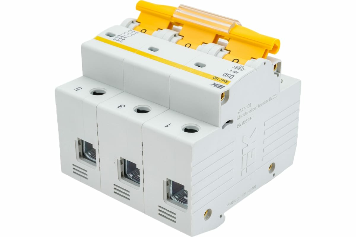 Выключатель автоматический модульный 3п D 50А 10кА ВА47-100 ИЭК Mva40-3-050-d Mva40-3-050-d .